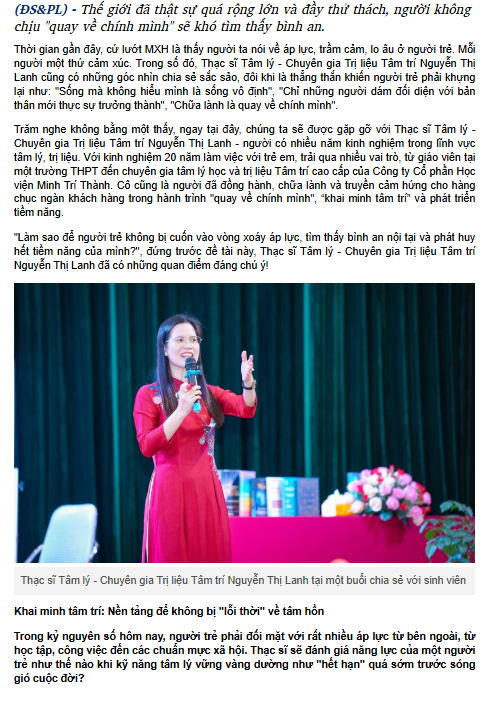 Là Thạc sĩ tâm lý học với 20 năm kinh nghiệm trong lĩnh vực phát triển bản thân và nuôi dạy con cái, cô Lanh đã giúp 30,000+ học viên chuyển hóa về tư duy, tiềm năng con người, có thái độ sống tích và kiến tạo gia đình hạnh phúc thông qua các chương trình đào tạo khác nhau.